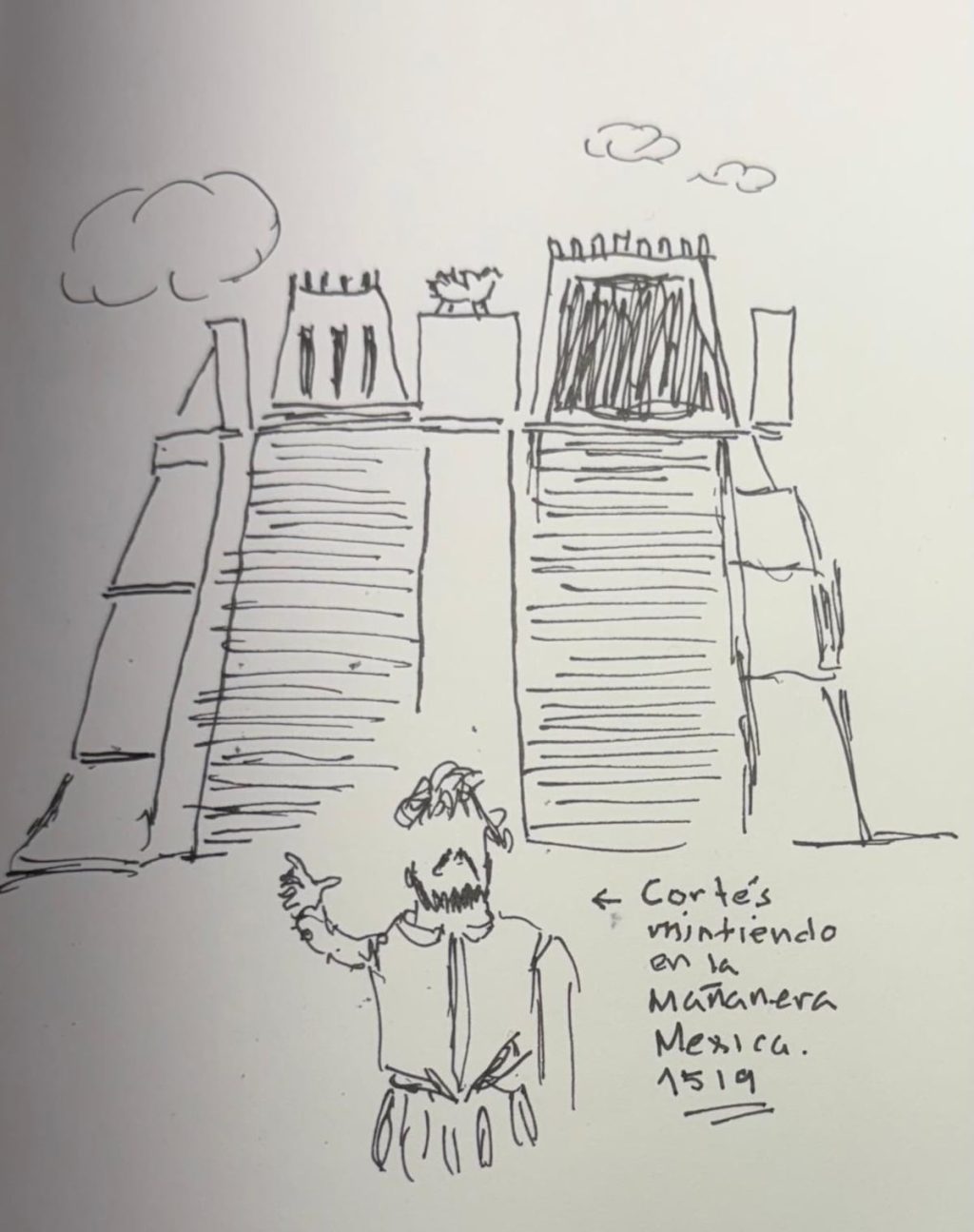 Siguiendo sugerencia soberbia del supremo soberano, supongamos en lo sucesivo que siga sosteniendo —sin sustento suficiente— sus seniles sueños y sus sentidas sílabas… Señoras y señores, supongamos que su Serenísima merece seriedad y sí, definitivamente sí: Hernán Cortés mintió y todo el rollazo de los sacrificios humanos en el México prehispánico es un bulo que el Conquistador apuntaló con la ayuda de tlacuilos sicofantes (Fisgonapixtli, entre otros) de la llamada Primera Transformación para la elaboración de códices o cómics que plasmaran escenas sangrientas en rollos de amate.Cortés no solo se imaginó corazones palpitantes en manos tatuadas de sacerdotes del sindicato nacional de maestros (sección Xochimilco), sino también inventó eso que llamamos pirámides. Nostálgico del Coliseo de Roma (que jamás vieron sus ojos) y queriendo superar en tallo a la Giralda de Sevilla, Cortés encargó a su primo Alonso García Bravo las monumentales torres o cúes tendientes a ser polígonos irregulares que más o menos clonaran los triángulos de Egipto (que ninguno de los dos conocía) y de allí asciende la Grandeza (título con el que Su Señor titula el opúsculo donde asienta sus revelaciones). Según Jesusa la jesuítica (en segunda acepción del adjetivo), Cortés celebró el parto de las grandezas con unas carnitas (bufete para el que mintió sobre la inexistencia de cerdos en el Valle de Anáhuac) y pasándose a todos los informantes de fray Bernardino de Sahagún por el Arco de su Triunfo (otra falacia del barbudo) se inventó el pulque con restos del último barril de vino que naufragó en aguas del Golfo de México (ahora reinventado por otro demente).Miente D. Hernán cuando le cantó el primer bolero a la Malinche, cuando confió a Bernal Díaz del Castillo la legitimidad de la mordida como modernísimo recurso contable y administrativo y mintió en la tercera Carta de Relación cuando le aseguró al rey de España que el tipo de cambio en Mesoamérica era fijado por un infalible consejo de ancianos chichimecas y que el turismo con intérpretes locales no tenía relación alguna (valga la redundancia) con el crimen organizado de tlaxcaltecas o cholultecas. También mintió al mandar pintar el lienzo como mapa del camino a las Hibueras, donde trazó con su dedo la Autopista del Sol (inaugurada casi cinco siglos después de su época).Es absolutamente falso que el mal-llamado pueblo Azteca (Mexicas, hijos del Sol) desconociera a los caballos, pues a la llegada de los sudorosos compañeros de Cortés ya existía la porra popular del equipo de futbol Atlante (que siempre jugó de caderita) y es mentira profunda la leyenda de que mandara quemarle los pies al valiente Cuauhtémoc (por restos arqueológicos que confirman el severo caso de pie de atleta que sufría desde’endenantes el monarca azteca) y no es enteramente cierto que Cortés prefigurara la estación del Metro Balderas o el estadio Azteca.Lo que no es mentira es que al término de las crueles batallas de la Conquista (consumada un día de San Hipólito) empezaron a aparecer condenas y consignas acusatorias en los muros encalados de la casa de Cortés en Coyoacán, Es el nacimiento del grafiti en lo que ahora llamamos México y consta que no pocos conquistadores aprovechaban la madrugada para reclamarle al otrora Capitán General incuestionable su parte del botín, sus honorarios comprometidos desde el inicio de la empresa conquistadora. Dicen que el ya declarado Marqués Cortés mandaba borrar los insultos y reclamos con brochazos de cal blanca como quien abusa del viejo corrector que usaban las primeras secretarias de la antigua burocracia para sus originales en máquina de escribir (otro invento cortesiano).Es totalmente cierto (y profético) que —ya harto Cortés de las pintas en su barda— salió él mismo brocha en mano y trazó la siguientes sentencia: “Pared blanca, papel de necios” que recoge Bernal Díaz en su Historia Verdadera (también recientemente acusada de mentira por un historiador francés con alma de novelista). La moraleja de toda esta distracción es que los soliloquios en el manicomio, las discusiones imbéciles en sobremesas de cantinas, las redes sociales todas… e incluso, algunos mamotretos que se publican por el Planeta sin confirmación o verificación de sus párrafos, son no más que Pared blanca; es decir, presidencial papiro para papalotes y pendejos… papel de necios.