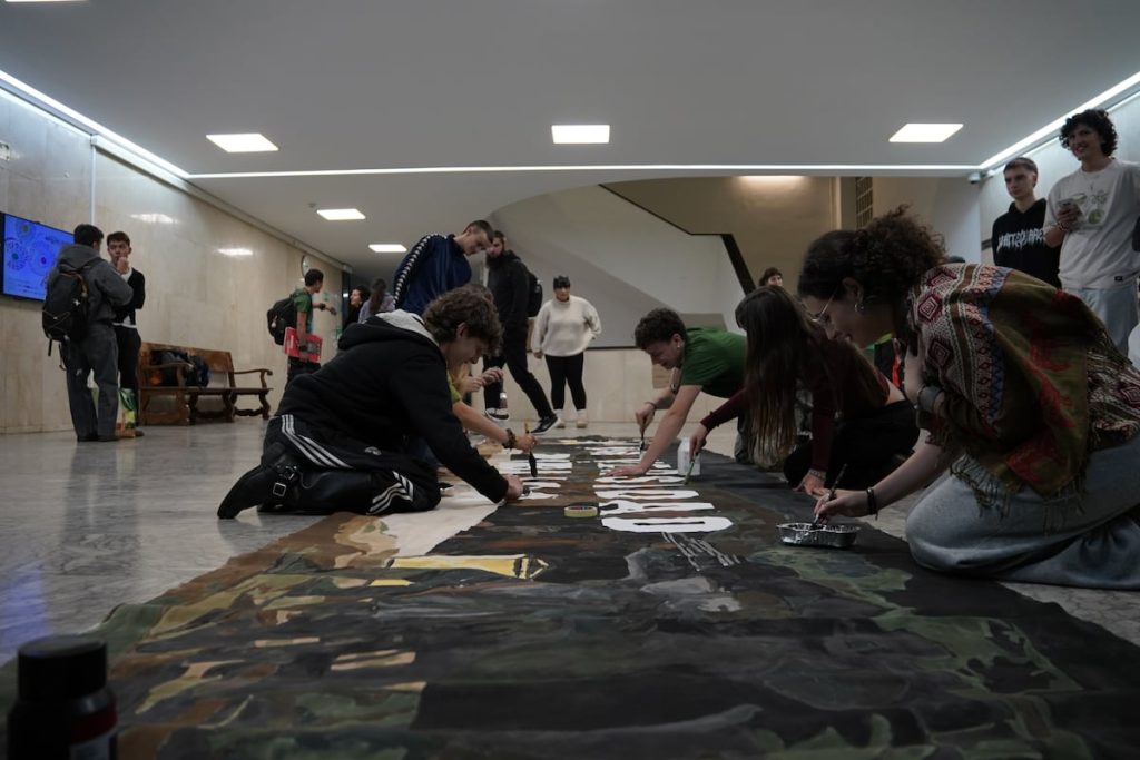 Decenas de manos trabajaban la pasada madrugada al unísono en la facultad de Bellas Artes de la Universidad Complutense para elaborar la cartelería con la que este miércoles y el jueves estudiantes y profesores reivindicarán a la Comunidad de Madrid un presupuesto mayor para sus seis universidades públicas. El pueblo indefenso que plasmó Francisco de Goya en El 3 de mayo en Madrid (conocido popularmente como Los fusilamientos) ha unido en las últimas semanas a docentes y alumnos de todos los cursos de Bellas Artes, que han elegido este cuadro como motivo central de la imponente pancarta que encabezará las dos manifestaciones de las protestas. “Somos ese hombre de blanco, con las manos alzadas, resistiendo ante quien nos quiere fusilar”, explica Sata García, docente en Bellas Artes y coordinadora del encierro secundado por casi 200 estudiantes y profesores. De la facultad saldrá a primera primera hora uno de los dos piquetes informativos que recorrerán la Ciudad Universitaria animando a los indecisos a sumarse a las protestas. En especial a los de la Politécnica de Madrid, la universidad con la que la Complutense comparte campus en el centro de Madrid. “Hay una implicación estudiantil increíble, porque la situación es tan precaria en la UCM, y en concreto en nuestra facultad, que las profesoras tenemos que poner dinero de nuestros bolsillos para comprar ciertos materiales o recursos que son necesarios para seguir adelante con las clases”, añade.Encierro en la facultad de Bellas Artes de la UCM la noche del miércoles.Victor SanjuanJunto a la profesora está Iker, de 18 años. Uno de los ideólogos de la pancarta de Goya explicaba como esta protesta le ha servido para comprobar el valor del arte como motor de cambio. “Defendemos el arte con el arte, es muy bonito”, matiza. “Ser parte de este movimiento me ha hecho ver que lo que aprendo aquí tiene también una utilidad social muy importante. Por eso quiero que mis compañeros y yo sigamos teniendo acceso a una universidad pública de calidad”, razona frente a un cartel que recuerda a los alumnos que “este encierro no es un botellón”, sino un acto organizado para luchar por una causa común. “No traigas bebida. Si lo haces, tendrá que quedarse en la puerta”.Raquel Monje, decana de la facultad, presente también en el encierro, se muestra orgullosa de tener a unos alumnos “tan responsables, solidarios y valientes” como los que forman parte de este movimiento. “Es todo un honor. Han trabajado durante semanas en las pancartas que llevarán los estudiantes de las seis universidades, han organizado de forma impecable esta huelga y el viernes a las nueve estarán en clase”.La UCM lleva meses denunciado una “asfixia económica insoportable” con protestas en distintas facultades. “Nuestra exigencia principal es que el presupuesto de universidades debe alcanzar el 1% del PIB de la Comunidad de Madrid. Todo lo que no sea un acercamiento real a ese horizonte, no lo contemplamos”, subraya García, tal y como también puede leerse en el manifiesto publicado por la plataforma coordinadora.Una de las pancartas elaboradas en la facultad de Bellas Artes de la UCM.Victor SanjuanSegún los primeros análisis realizados por UCM por la Pública, la subida presupuestaria anunciada para este 2026 por la comunidad representa un paso del 0,44% al 0,46% del PIB. “No podemos hablar ni siquiera de subida, sino que nos encontramos con un presupuesto estancado, y además en un contexto de infrafinanciación”, exponen. ‘Merchandising’ para una caja de resistenciaDurante el encierro nocturno los alumnos han continuado con la elaboración, además, de pegatinas, camisetas o ropa interior, entre otros productos de merchandising. “Lo que queremos es generar una caja de resistencia por si tenemos que ir a la huelga indefinida”, asegura Enma García, alumna de 19 años la facultad de Bellas Artes, muy comprometida con las protestas. “Buscamos generar materiales visuales que llamen la atención a medios de comunicación y a la gente en redes sociales para dar a conocer el desmantelamiento que estamos viviendo en la pública”, cuenta. El malestar también pasa, sostiene Enma, porque el precio de la matrícula pública en Madrid “se ha vuelto inasumible” . En otras comunidades es gratis si el matriculado va aprobando.. “Lo que queremos es seguir estudiando de una manera digna y que el personal laboral de la universidad también tenga unas condiciones dignas”, enfatiza. Para ilustrar su denuncia, Enma pone algunos ejemplos: las personas que trabajan como modelos en Dibujo o Escultura hacen demasiadas horas porque tienen que cubrir a otros; hay profesores que asumen las bajas de algunos compañeros para que los alumnos no se queden sin clases, “ya que no hay posibilidad de contratar suplente con este presupuesto”; y los departamentos carecen de fondos para afrontar cualquier gasto inesperado, por mínimo que este sea. De hecho, desde julio de 2024 las facultades cuentan con un 35% menos de partida para gastar.Encierro en la facultad de Bellas Artes de la UCM previo a los dos días de huelga.UCM por la Pública“Hemos tenido que pagar hasta la pintura blanca con la que cubrir los murales que pintaron las alumnos de esta asignatura el año pasado y poder hacer nosotras los nuestros”, lamenta, y añade que este tipo de costes estaban cubiertos antes por la universidad. “Los caballetes de mi clase tienen más de 30 años, no podemos seguir estudiando en esas condiciones; muchos materiales que se daban en la facultad los tenemos que comprar nosotros porque se quedan viejos o deteriorados”, remarca.Las palabras de Enma son compartidas por el resto de sus compañeros. En unas horas saldrán a defender el derecho a una educación pública de calidad con sus mejor arma, el arte.
