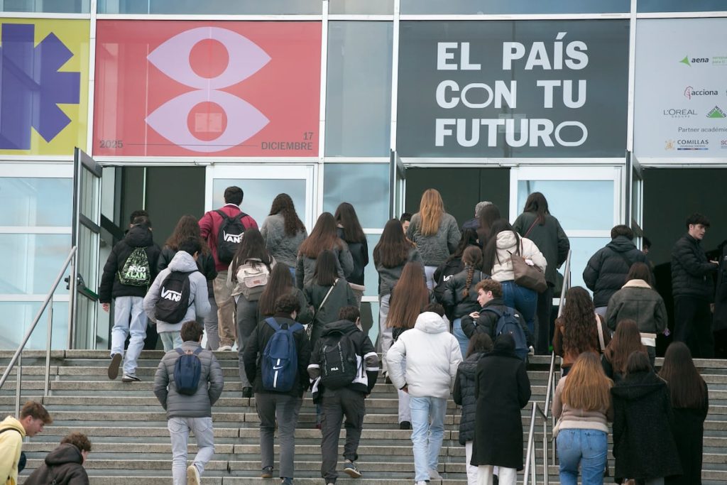 El miércoles 17 de diciembre, David Blay, consultor de comunicación y teletrabajo, autor del libro Por qué no nos dejan teletrabajar, se subió al escenario de EL PAÍS con tu futuro (EPCTF) y dijo: “Sois la primera generación de la historia de la humanidad que se puede inventar su trabajo”. Los 2.000 estudiantes de 1º y 2º de Bachillerato, procedentes de colegios e institutos de Madrid y alrededores, que acudieron al evento —unos 1.200 más lo siguieron en streaming— recibieron sus palabras como un bálsamo calmante. Minutos antes, en la entrada, los corrillos reproducían, un año más —y ya van 11— el mismo runrún: “Dudo entre varios grados”; “No sé qué estudiar”; “Veo el futuro bastante negro”. Los alrededor de 60 ponentes de la jornada coincidieron en rebajar trascendencia a las decisiones que hay que tomar a esta edad, y en recordar que en ningún lado está escrito que las trayectorias formativas y profesionales hayan de dibujar una línea recta.Es más, algunas, como la de Virginia Sánchez, manager de Atracción y Adquisición de Talento de Leroy Merlin, son auténticas piruetas: se formó en astrofísica y tiene un doctorado en física nuclear, pero descubrió su vocación en la gestión de equipos. Ella no habló de errores o aciertos, sino de pasos en el camino que la ha llevado hasta la posición que ocupa. “Todo evoluciona. El sistema más caótico, impredecible y cambiante… son las personas”, enfatizó. Terminó su intervención exhortando a perder el miedo a equivocarse. “Os vais a equivocar, os vais a levantar y, de ese error, vais a sacar grandes éxitos”, aseguró. Para darle la razón, el evento organizado por EL PAÍS llevó por lema este año “Elige tu propia aventura”.Virginia Sánchez, ‘manager’ de Atracción y Adquisición de Talento de Leroy Merlin España. Jaime VillanuevaEPCTF 2025 tuvo a Aena, Renfe y Santander como impulsores; a Acciona, Farmaindustria, Iberia, L’Oréal Groupe, Leroy Merlin, Moeve, Multiópticas como patrocinadores; a la Universidad Pontificia de Comillas y Schiller University como partners académicos; y a Noticiastrabajo como empresa colaboradora. Contó con tres salas —Educación y Empresa (Sala Santander), Ciencia y Tecnología (Sala Aena) y Arte y Creatividad (Sala Renfe)— por las que los estudiantes circulaban a su antojo, y de las que salían para acercarse a los one to one con los ponentes que más le interesaban. “Nos conformamos con que a un cuarto de nuestros alumnos les motive una charla, y se levanten detrás de un ponente para mantener con él un encuentro más personal”, manifestaban Rebeca Velasco y Úrsula González, tutoras de Bachillerato del colegio Aquila de Parla (Madrid), que venían acompañando a un grupo de 40 chicos y chicas. Varios tenían claro qué grado estudiar, pero otros andaban perdidos, y en algunos casos, desmotivados, apáticos, según detectaban las docentes. “Queremos que tengan referentes de innovación que los inspiren”, contaban. Aunque si alguien acudió a EPCTF pensando que allí encontraría su vocación, en mayúsculas y negrita, como una suerte de fogonazo revelador, lo más probable es que se llevara un chasco. Los expertos convocados despojaron de mística a la susodicha vocación, planteándola más bien como un proceso de introspección y autoconocimiento; un juego de poleas y fuerzas contrarias que han de encontrar el equilibrio: en qué soy bueno, qué me gusta, cómo desearía vivir mi vida. “Yo lo veo más como una intersección entre lo que os hace feliz y lo que os ofrece oportunidades laborales. Si os quedáis con la vocación y no miráis el mercado, os frustraréis; si solo miráis el mercado, os hará infelices”, advirtió Sánchez.Carlos Casadomé Perales, óptico-optometrista y técnico de formación en Multiópticas.Jaime VillanuevaEn esta balanza entre sueños y realidad se movió al canario Carlos Casadomé Perales hasta que encontró su lugar en el mundo como óptico-optometrista y técnico de formación en Multiópticas. El pequeño Carlos quería dedicarse a la arquitectura cuando fuera mayor, pero no se le daban bien las matemáticas. Entonces le regalaron una cámara y apostó por ser director de cine, pero el grado en cinematografía costaba un dinero que su familia no poseía. “Si no puedo trabajar detrás de una cámara, ¡las diseñaré!”, pensó, y se decantó por una ingeniería en Zaragoza porque era la única universidad en la que pudo entrar con su 6,49 sobre 14 en la Prueba de Acceso a la Universidad (PAU). Le fue mal, pero seguía aspirando a algo relacionado con cámaras y lentes, así que se matriculó en óptica y optometría en la Universidad Complutense de Madrid. “Me cambió la vida”, subrayó.Hace 10 años, Pedro Marcelino, director de Data Driven Experiences & Consumer Care de L’Oréal Groupe, era un licenciado en marketing que se ganaba la vida como tatuador. “Aquello me enseñó a escuchar y conectar con las personas”, reflexionó en su charla, en la que reveló que el motor de su atípica trayectoria había sido la curiosidad. Asimismo, comentó que desde su actual posición ayuda, con datos, a la innovación y al conocimiento sobre el cliente; en su caso, para ofrecerle productos de cosmética y belleza. Su labor se encuadra en el desafío asumido por su grupo para liderar la transformación digital, impulsando iniciativas bajo el paraguas Beauty Tech, como eje de este cambio que integra la tecnología en la experiencia de belleza. Pedro Marcelino, ‘Data Driven Experiences & Consumer Care Director’ en L’Oréal Groupe.Jaime Villanueva“Estudié ingeniería informática porque mi amigo Murillo programó un círculo muy chulo con el ordenador”, recordó Carlos Rebate, director de Transformación de Securitas España. Se tituló en Filosofía mientras hacía malabares en el madrileño parque del Retiro. Se doctoró en ambas ramas de conocimiento, sin tesis; ahor